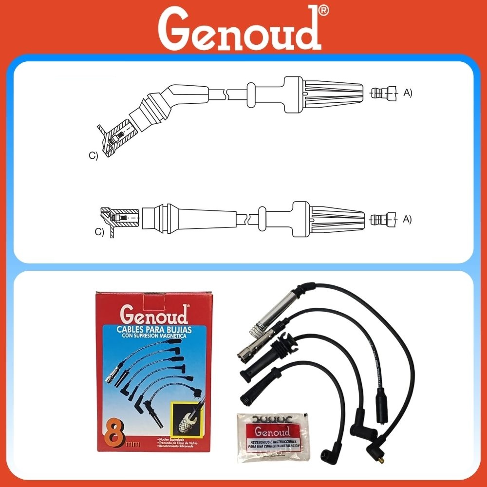 11027GENO - CABLE BUJIA PEUGEOT 504 2.0 BOB.LARGA C/PIPAS P/GNC