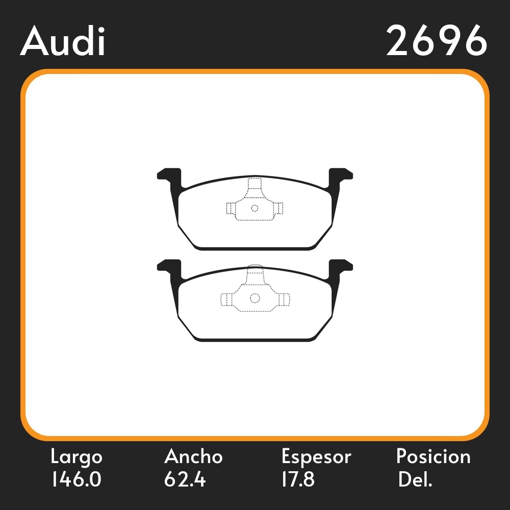 PASTILLA DE FRENO AUDI A1 VOLKSWAGEN ALTO 62,40 ANCHO 146,00 ESTIMADOR 17,80 POSICION DELANTERA 1270
