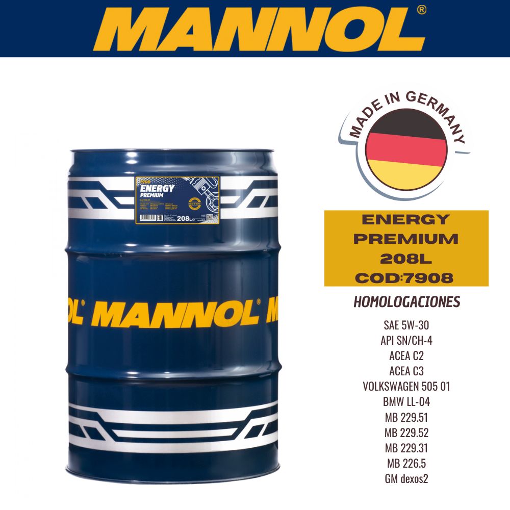 ACEITE SINTETICO MANNOL 5W30 208L ENERGY PREMIUM CAJA (X1U) API SN/CH-4 - ACEA C3