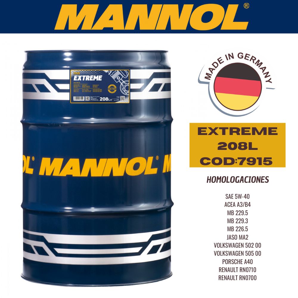 ACEITE SINTETICO MANNOL 5W40 208L EXTREME CAJA (X1U) API SN/CH-4 - ACEA A3/B4