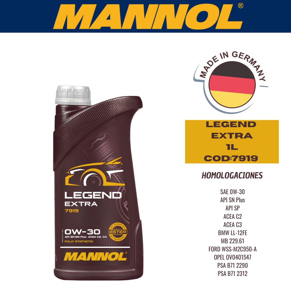 ACEITE SINTETICO MANNOL 0W30 1L LEGEND EXTRA CAJA (X20U)