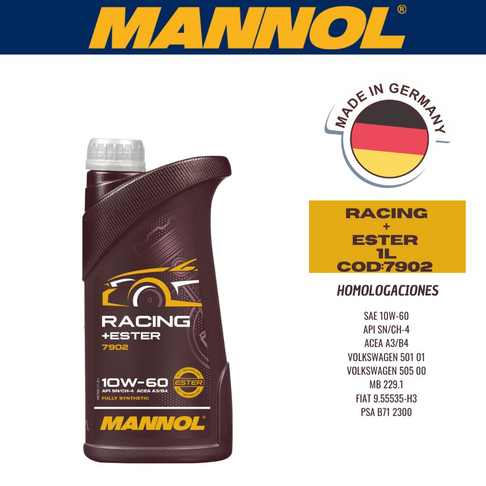 ACEITE SINTETICO MANNOL 10W60 1L RACING+ESTER CAJA (X20U) API SN/CH-4 - ACEA A3/B3/B4