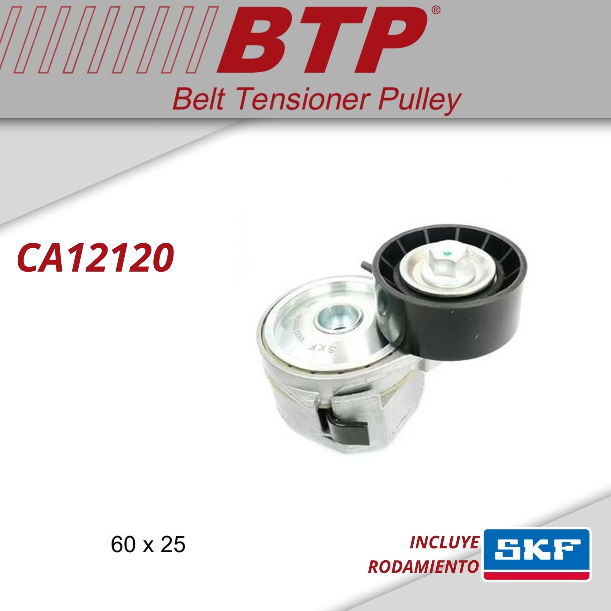 CA11105 - TENSOR POLY V RENAULT R19 D CON SOPORTE DE CHAPA OEM: 7700852410 VKM36012 F-121271.1 MEDIDAS: 90X49X24