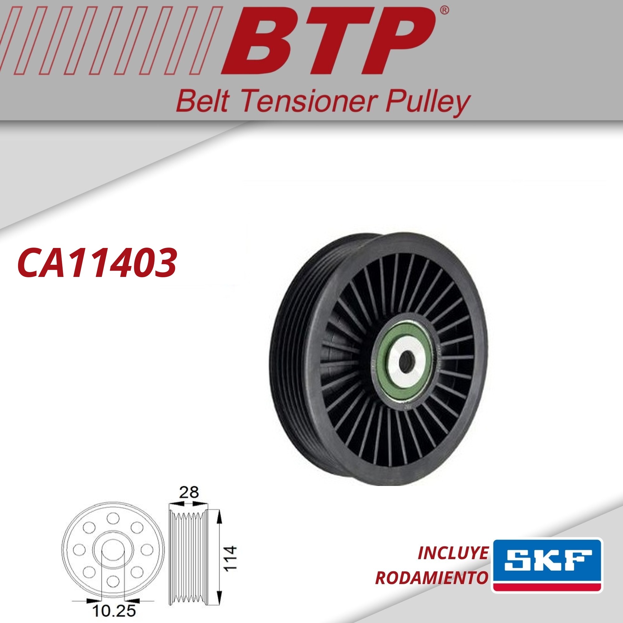 TENSOR POLY V CHEVROLET MULTICANAL ASTRA / VECTRA DIESEL EQUIPADO CON 2 ROD. 6203 CAPACIDAD DE CARGA SUPERIOR AL ORIGINAL. OEM: VKM 35016 F- 226668.2 MEDIDAS: 114X28 INT: 10.5