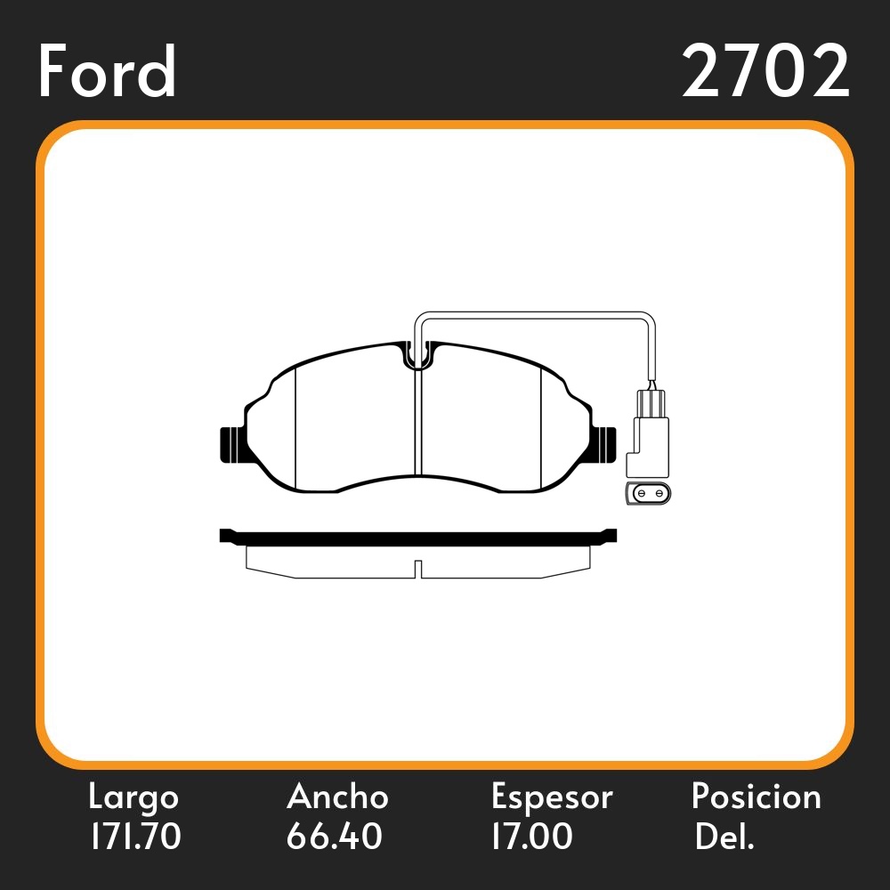 PASTILLA DE FRENO FORD TRANSIT FURGON BUS 2.2 TDCI LARG. 171.70 ANC. 64.40 ESP. 17 EJE DELANTERO POSICION DE GUARDADO (1132)
