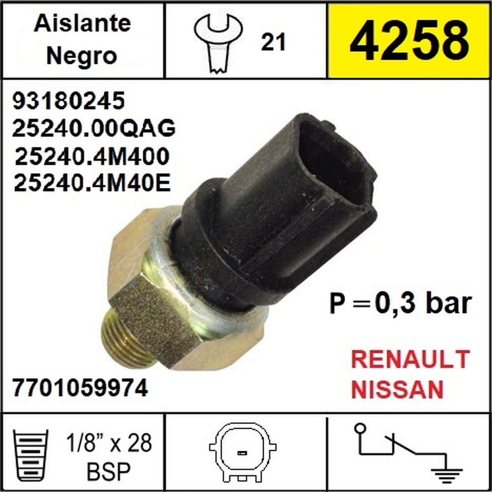BULBO ACEITE RENAULT LAGUNA-MASTER / NISSAN 370Z - ALTIMA - ARMADA - CUBE - MAXIMA - MURANO - SENTRA - TIIDA - PATHFINDER - ROGUE - LIVINA - VERSA - FRONTIER - MARCH OEM = 93180245 / 7701059974