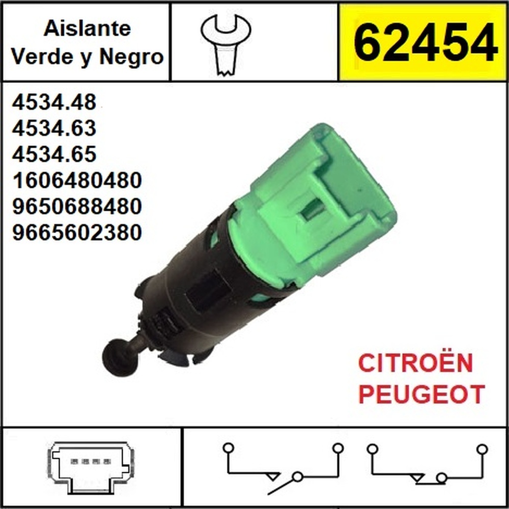 BULBO STOP CITROEN C3 C4 C5 DS3 / PEUGEOT 207 307 308 407 1007 3008 RCZ / FIAT SCUDO - ULYSSE OEM 4534.48 / 4534.63 / 4534.65 1606480480 EQUIVALENCIAS 14768FAL 187MB