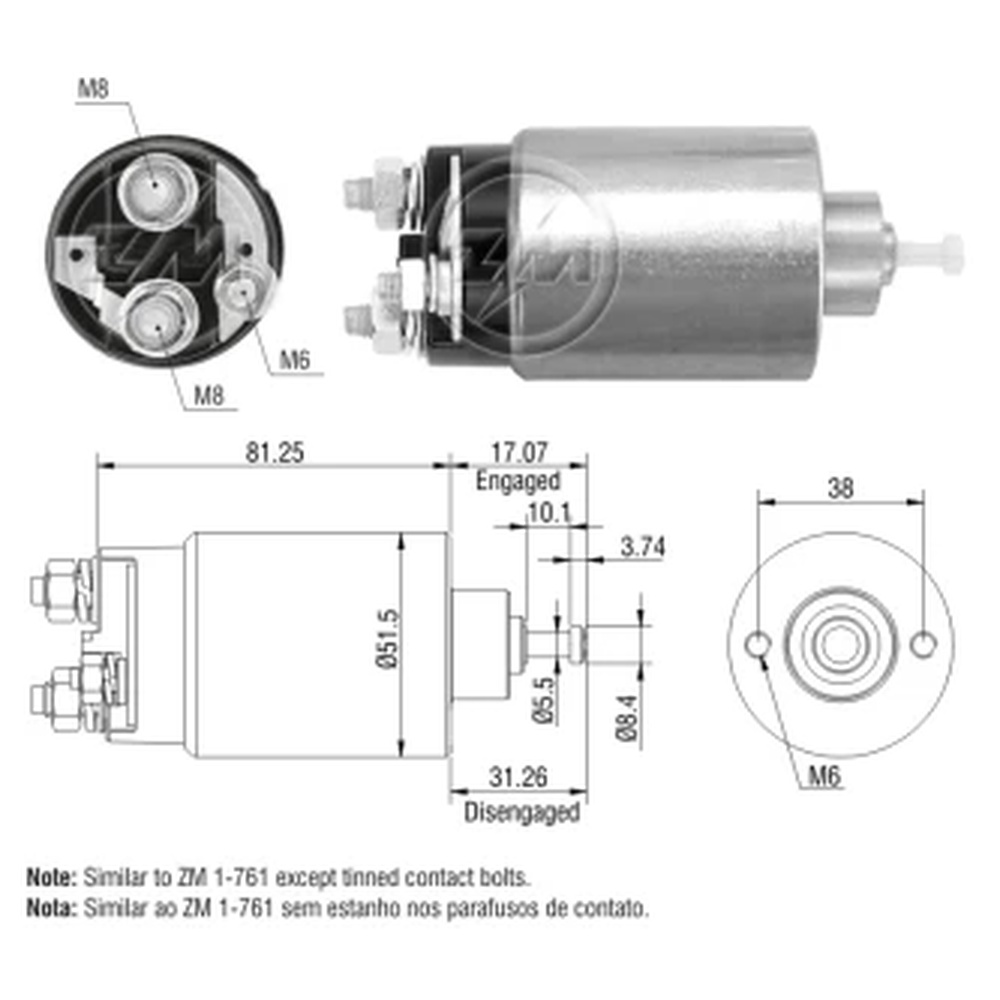 1691-35816 - SOLENOIDE MITSUBISHI 12V MAZDA 616-929/P.UP/MIT.COLT/GALANT
