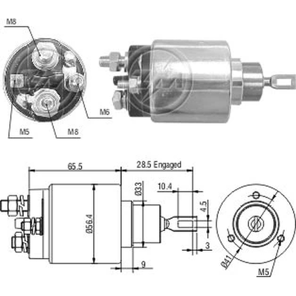 7365-35799 - SOLENOIDE DELCO REMY 12V MASSEY FERGUSON 2360/ CUMMINS/ CATERPILLAR 41 MT CON PISTON Y TUBO DE ACERO