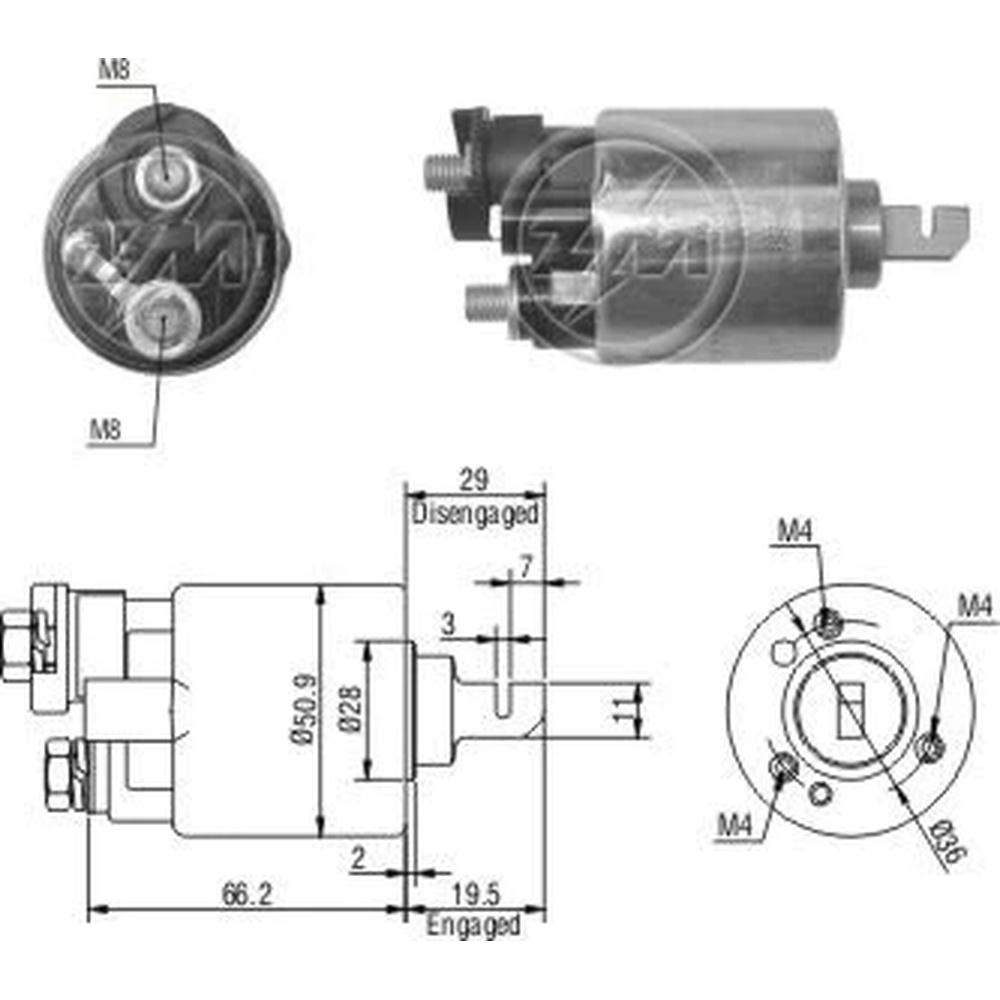 0560-35528 - SOLENOIDE PARA ARRANQUE DUCELLIER VALEO DOGDE 1500 PEUGEOT 504-505 TENSION 12V EQUIVALENCIAS 606893 680559 680560 680566 NE355 NE361