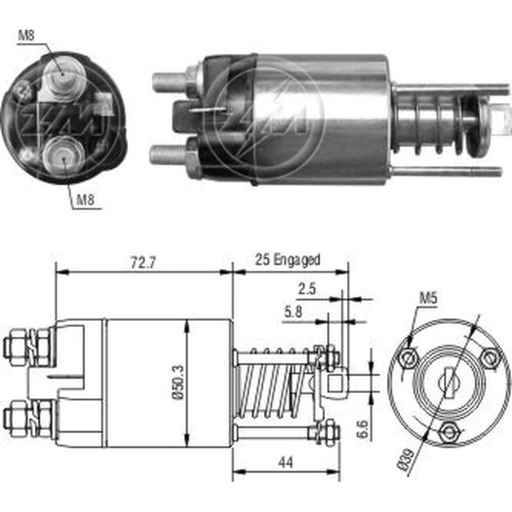 7365-35799 - SOLENOIDE DELCO REMY 12V MASSEY FERGUSON 2360/ CUMMINS/ CATERPILLAR 41 MT CON PISTON Y TUBO DE ACERO