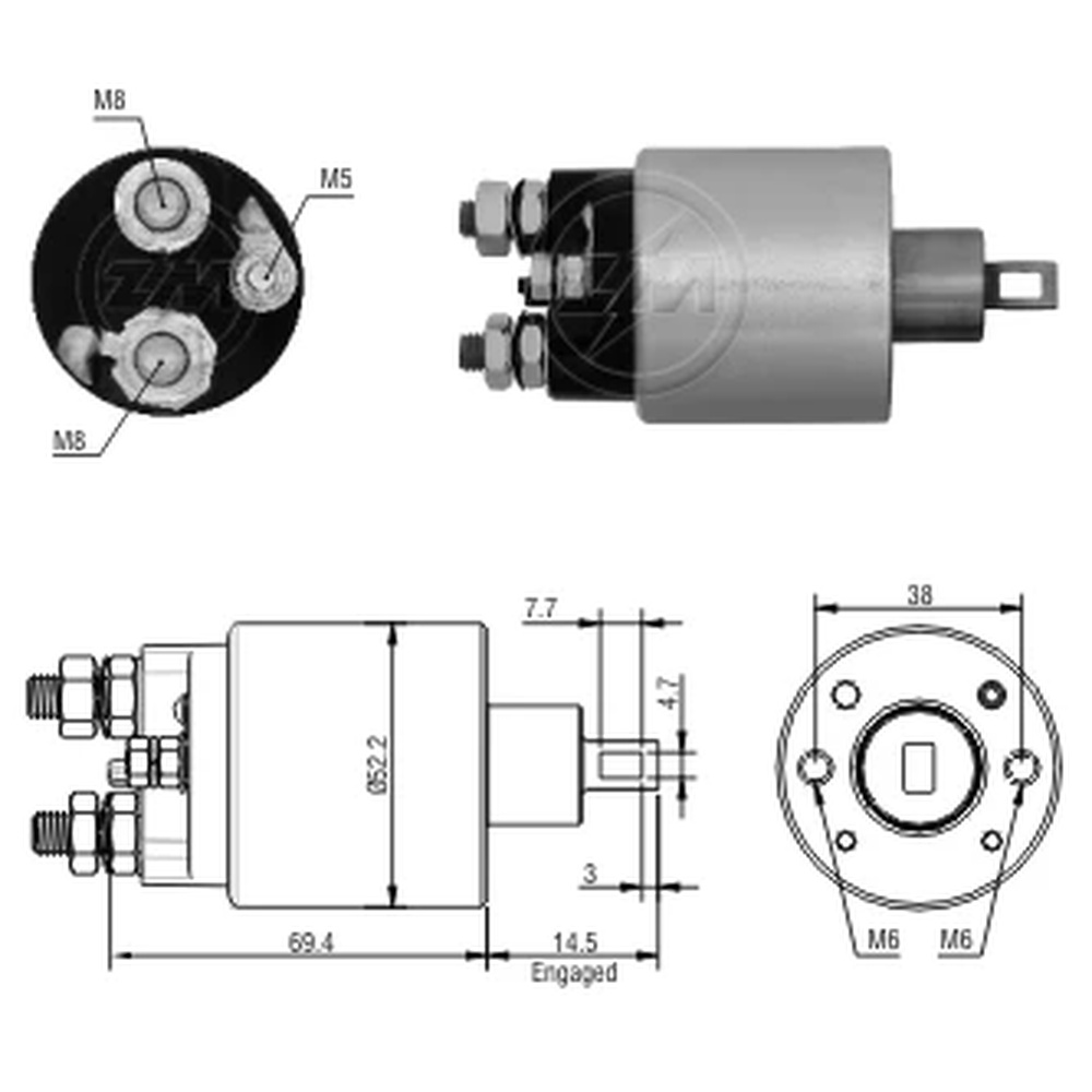 SOLENOIDE INDIEL 12V AGRALE TRACTOR 4230- CATERPILLAR 3126