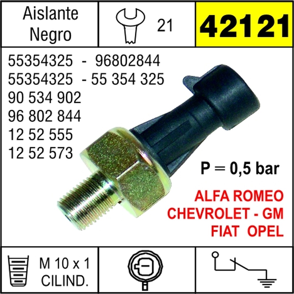 BULBO ACEITE CHEVROLET CORSA-MERIVA-VECTRA-ZAFIRA GM 1.2 1.6 EQUIVALENCIAS 18753FAL