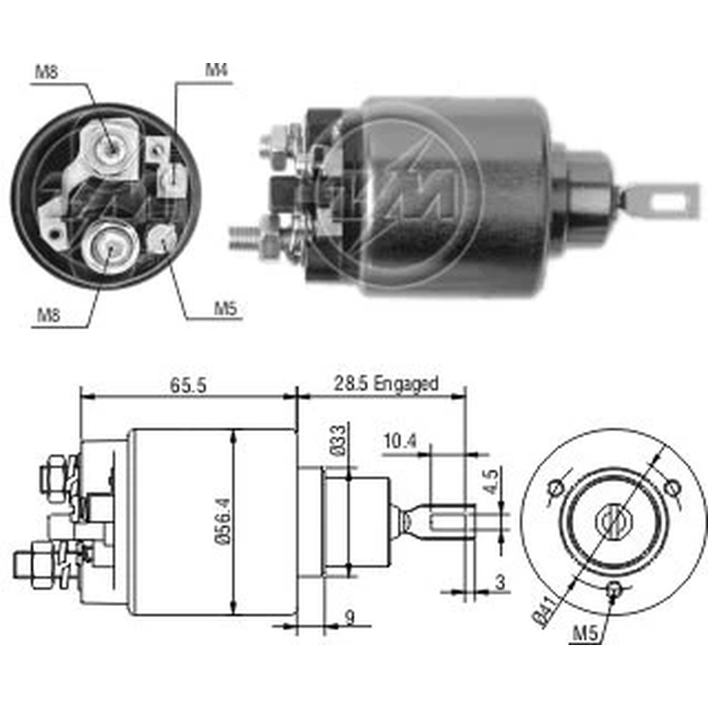 1610 - SOLENOIDE PARA ARRANQUE MASSEY FERGUSON NEW HOLLAND TENSION 12V EQUIVALENCIAS 60933080 76943 77015 77015A TOB168 TOB177
