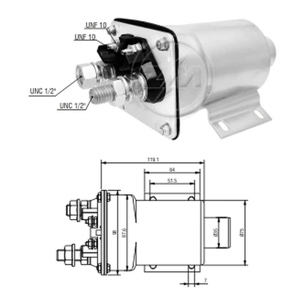 0465-35762 - SOLENOIDE DELCO REMY 12V CUMMINS/CATERP.41MT (TUBO LATON)