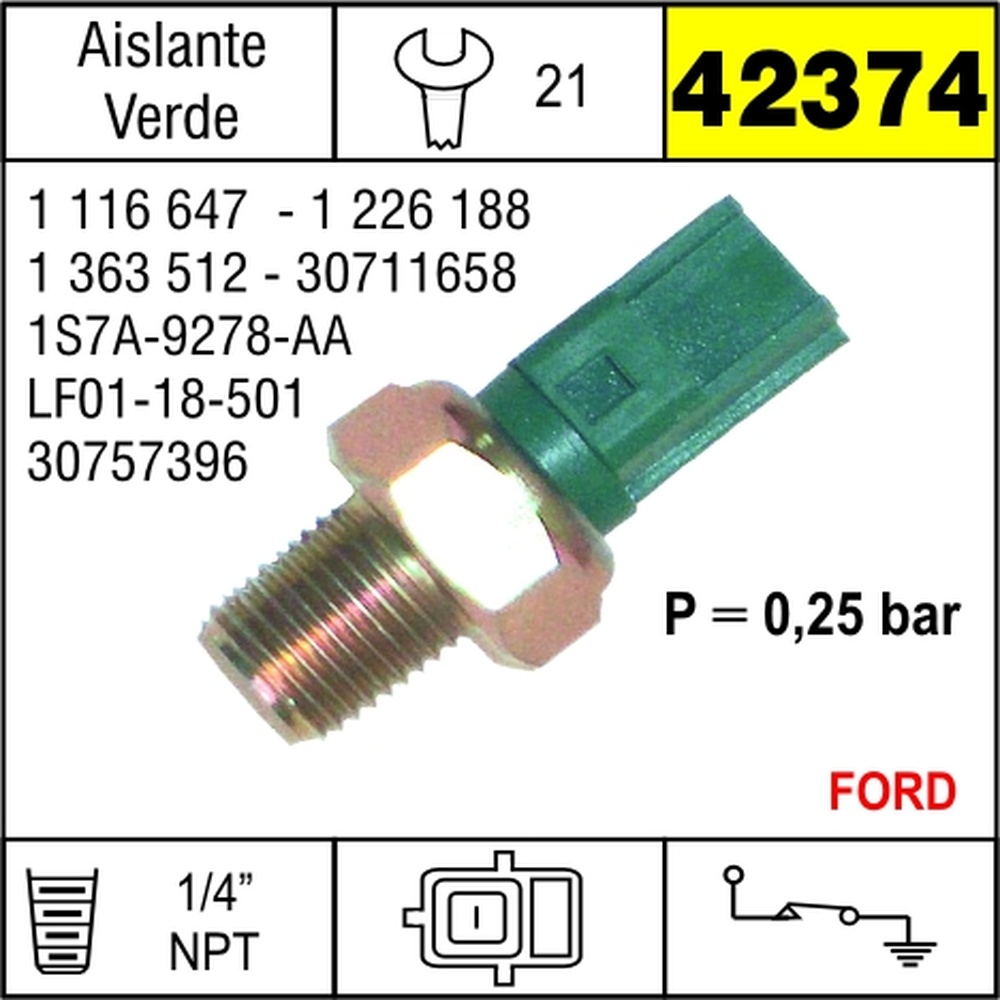 BULBO ACEITE FORD ECOSPORT 2.0 2003-> VERDE