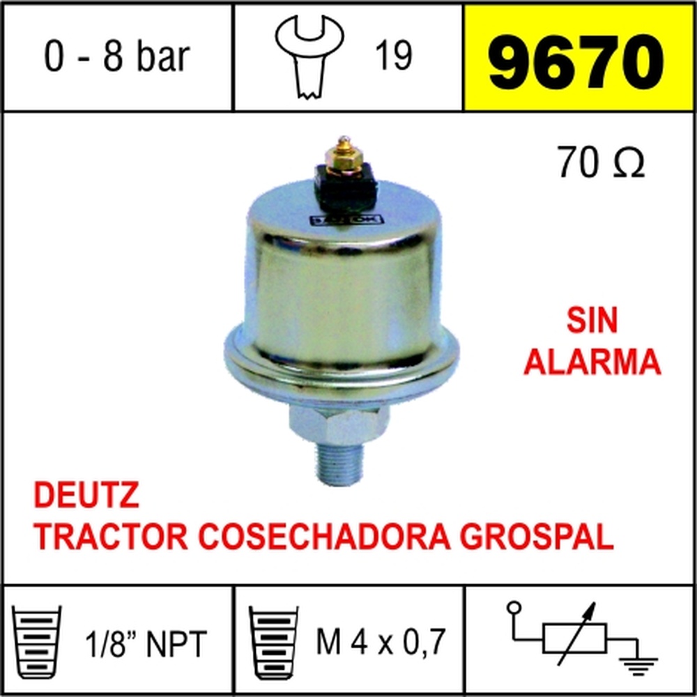 9170GENY - BULBO CEBOLLA FORD 1000 MOTOR CUMMINS 1/8 CON ALARMA