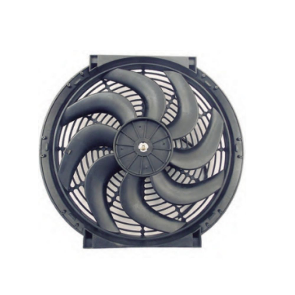 ELECTROVENTILADOR UNIVERSAL FLUJO: ASP. - SOP. | GIRO: HOR. - ANTIHOR. | EXT. 14" | VOLTAJE: 24 V | POT. 160 W | CAUDAL: 2185 M3|H | ALTURA: 80 MM | ASPA CURVA - FLUJO: ASP. - SOP. - SENTIDO GIRO: