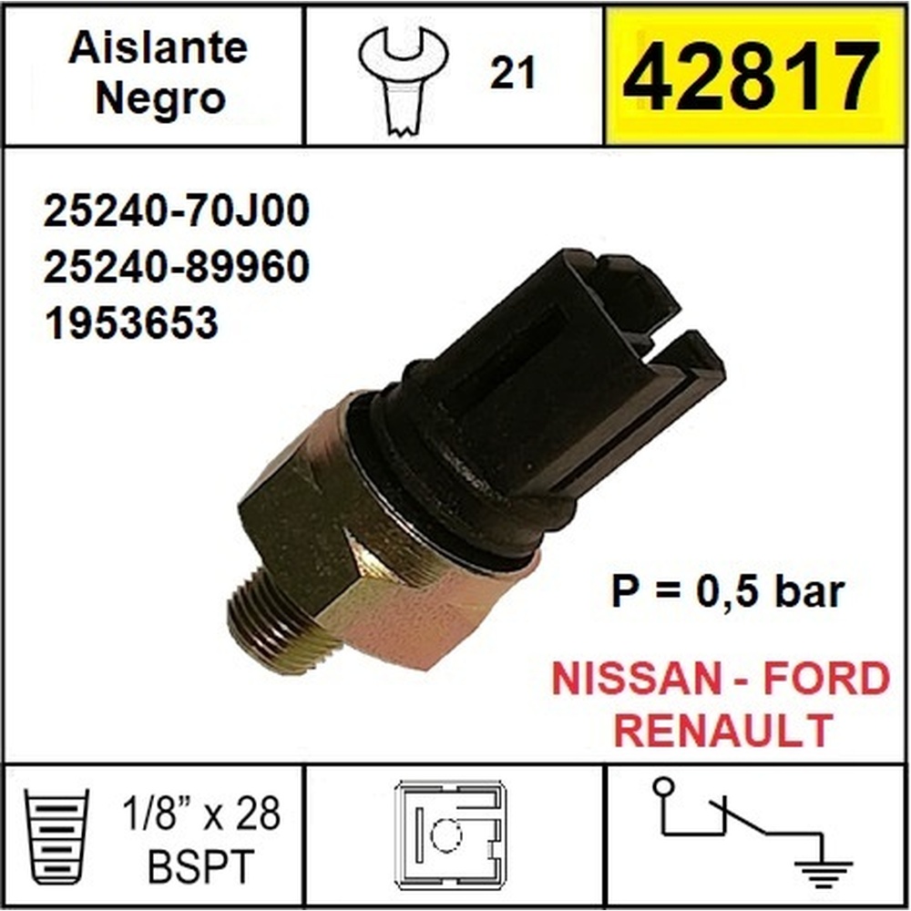 BULBO ACEITE FORD MAVERICK DIESEL / NISSAN: 100NX- 200SX- 240SX- BLUEBIRD- MAXIMA III IV V- MURANO 3.5, PATHFINDER 3.0 3.3 3.5 PATROL PICK UP- PRIMERA- TERRANO / RENAULT ESPACE IV- MASTER II