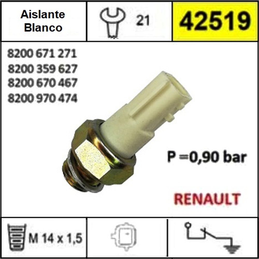 BULBO ACEITE RENAULT SANDERO 1.0 16V - LOGAN 1.0 16V - CLIO 1.0 16V EQUIVALENCIAS 18749FAL 358MB