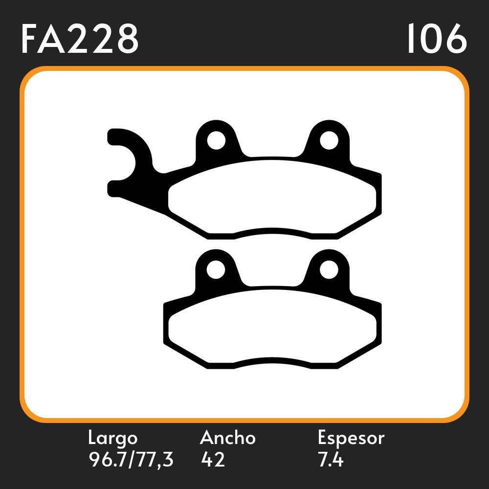 PASTILLAS DE FRENO SUZUKI KAWASAKI YAMAHA HONDA CMX 250 / KYMCO YUP 50 - FILLY 50 LAR. 96.7/77.3 ANC. 42 ESP. 9 POSC. DEL. GUARDADO 159 EQUIVALENCIAS FA228
