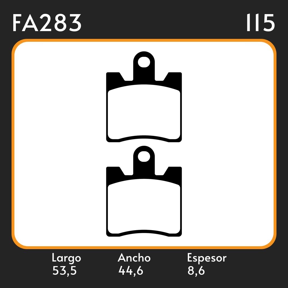 PASTILLAS DE FRENO SUZUKI AN250 BURGMAN / KAWASAKI EPSILON 250 LAR. 53.55 ANC. 44.6 ESP. 8.6 POSC. DEL. GUARDADO 283