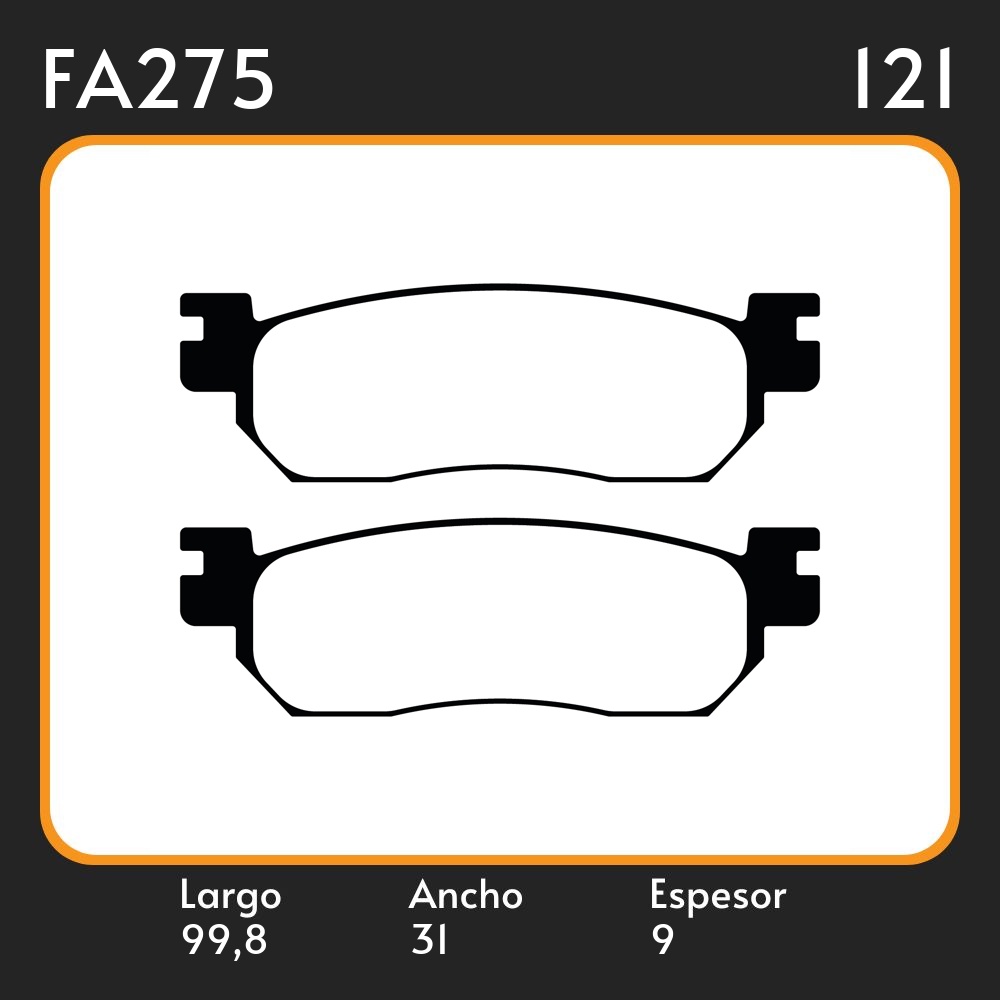 PASTILLAS DE FRENO YAMAHA YAMAHA YZF 600 R "R6" 99-02 / YP250 DX/A MAJESTRY 98-03 TRAS LAR. 99.8 ANC. 31 ESP. 9 POSC. DEL. GUARDADO 99 EQUIVALENCIAS FA275
