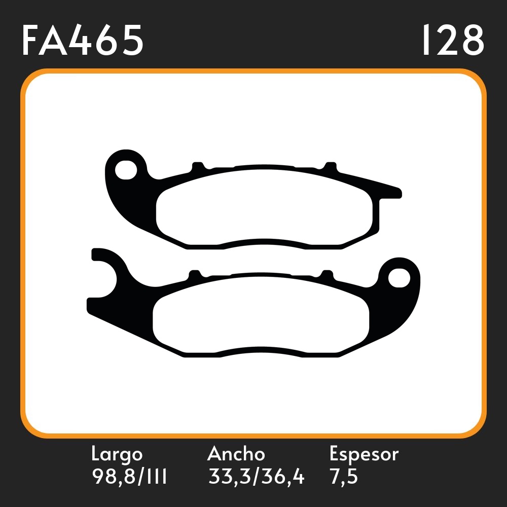 PASTILLAS DE FRENO YAMAHA XTZ 250 LANDER BLUE-XTZ 250 TÉNÉRÉ - 2016 E 2017 LAR. 98,8 111 ANC. 33,3 36,4 ESP. 7.5 POSC. DEL. GUARDADO FA465