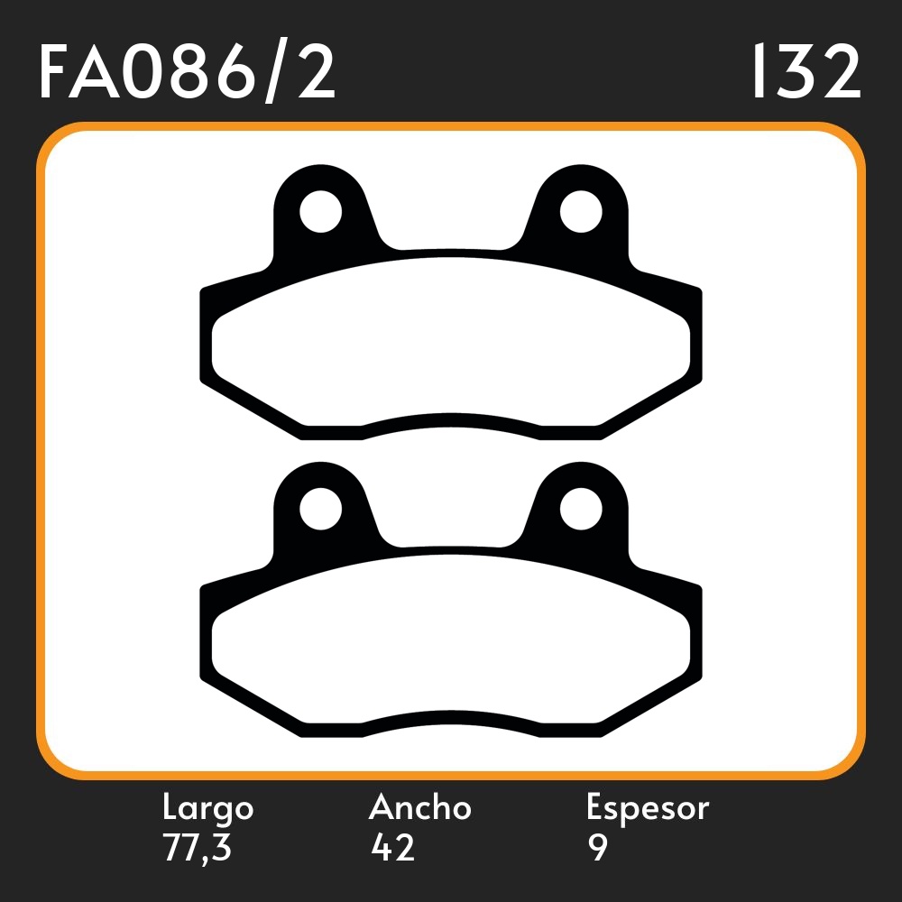 PASTILLAS DE FRENO GILERA KYMCO HONDA HONDA 125 // GT 250 // GT650 LAR. 77.3 ANC. 42 ESP. 9 POSC. DEL. GUARDADO FA 86/2