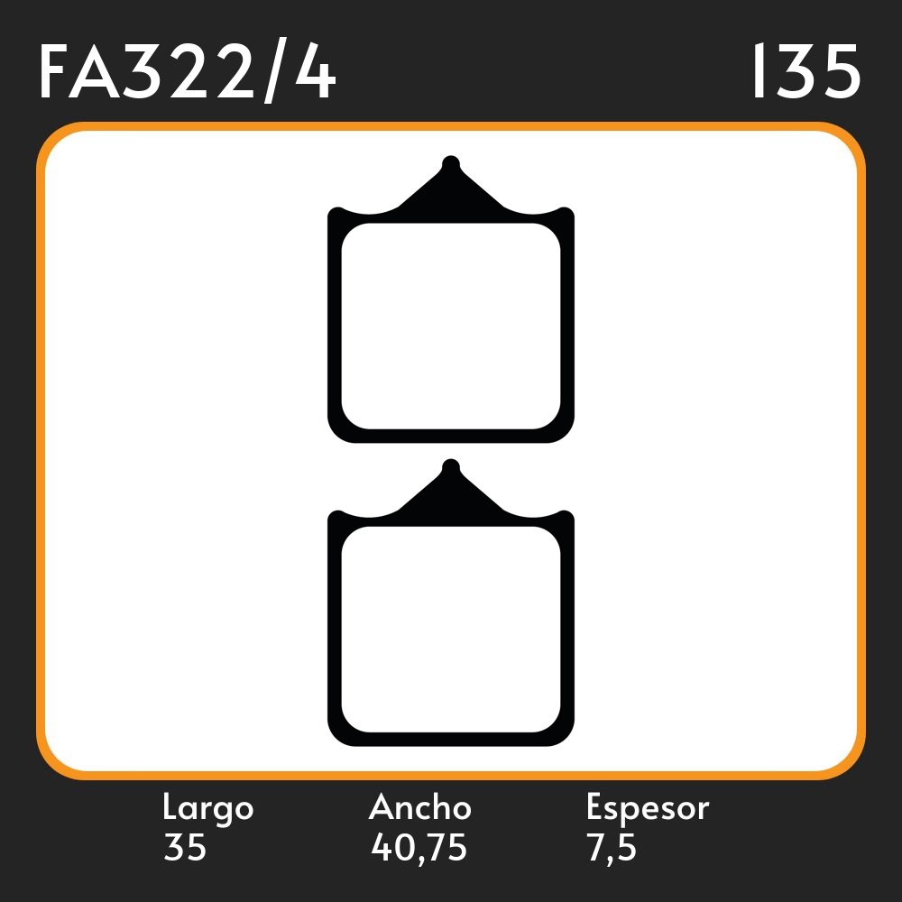 PASTILLAS DE FRENO BENLLI TORNADO LAR. 35 ANC. 40.75 ESP. 7.5 POSC. DEL. GUARDADO FA 322 / 4