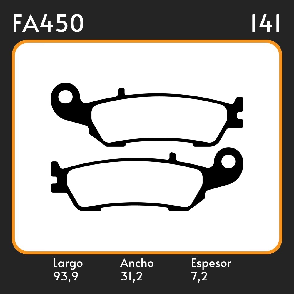 PASTILLAS DE FRENO YAMAHA YZ 125 CE16C 2008-2015 LAR. 93.9 ANC. 31.2 ESP. 7.2 POSC. DEL. GUARDADO EQUIVALENCIAS FA450
