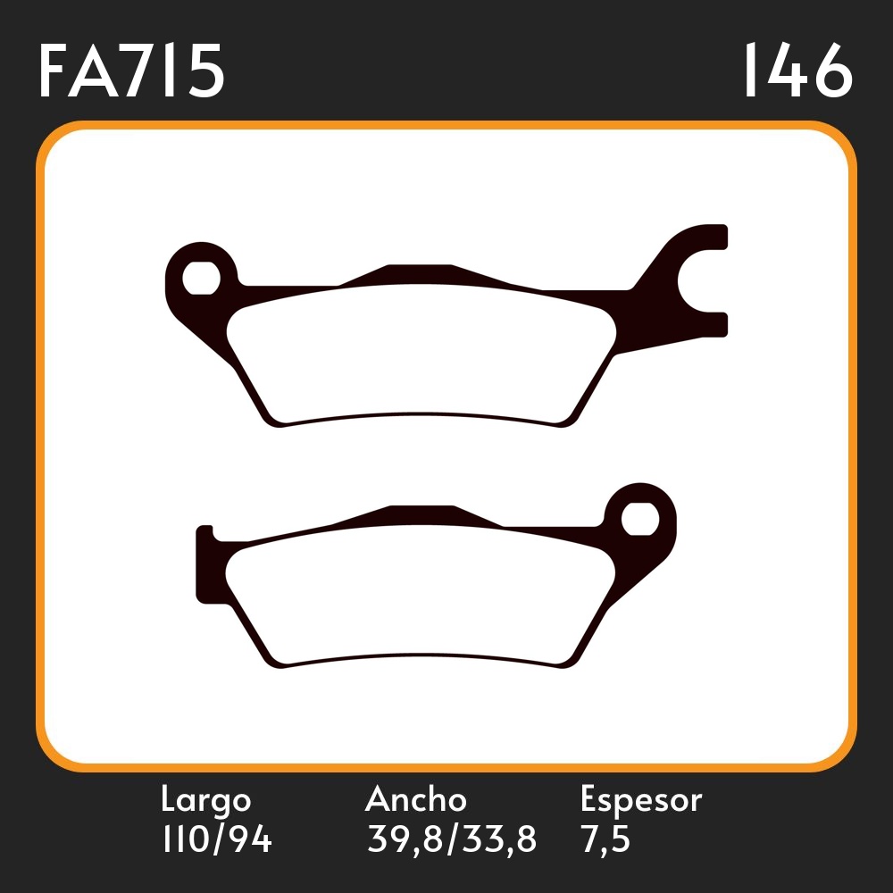 PASTILLAS DE FRENO HONDA SUZUKI GIXXER 150 LAR. 110 94 ANC. 39,8 33,65 ESP. 7.5 POSC. DEL. GUARDADO HD165 EQUIVALENCIAS FA715