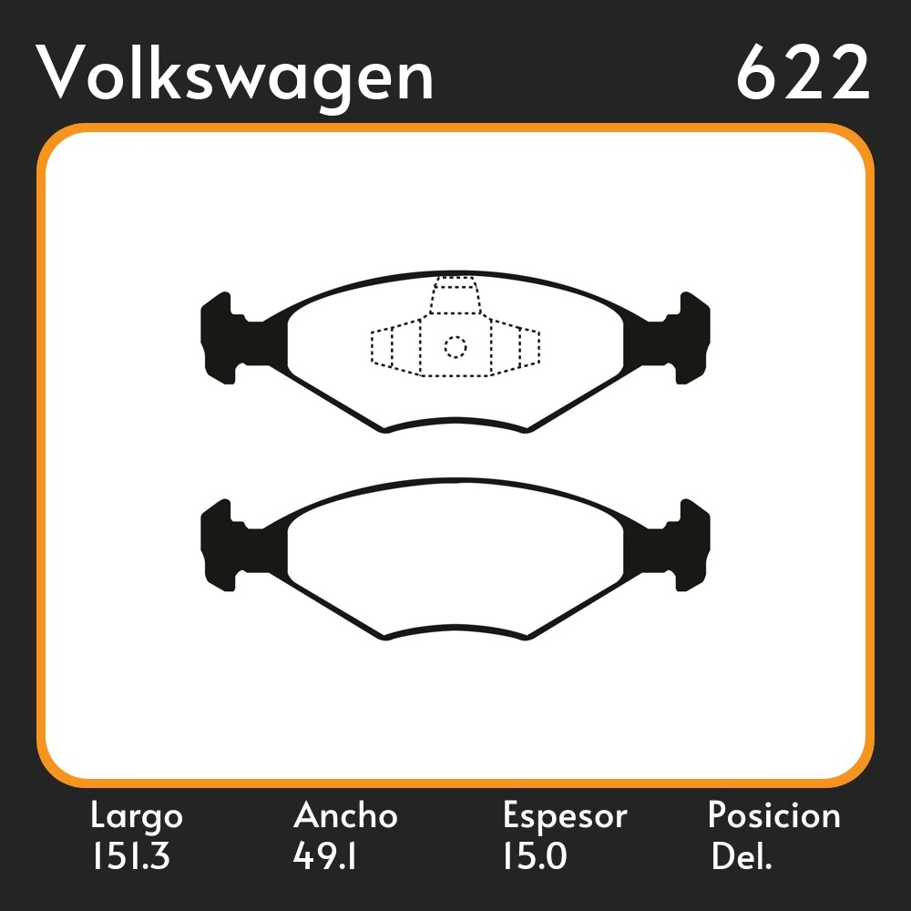 PASTILLAS DE FRENO VOLKSWAGEN SAVEIRO 1.6 1.8 07-09 / LAR. 151.3 ANC. 49.1 ESP. 15 POSC. DEL. GUARDADO (1060) EQUIVALENCIAS MAZFREN 3223 FRAS LE PD/81 FIMPEX 1026 LITTON 38412