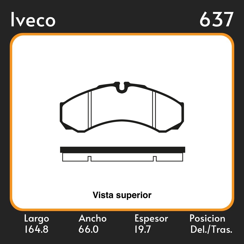 PASTILLAS DE FRENO IVECO DAILY-GRINTA 12 (01/90) LAR. 164.8 ANC. 66 ESP. 19.7 POSC. DEL. GUARDADO (478) EQUIVALENCIAS MAZFREN 3082 FRAS LE PD/122 FIMPEX 1122 LPR 05P684 LITTON 38950