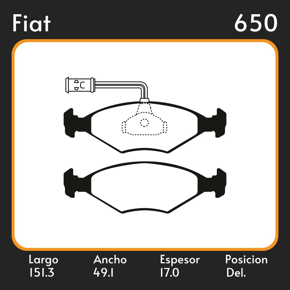 PASTILLAS DE FRENO FIAT TIPO BRASILERO 94/97 LAR. 151.3 ANC. 49.1 ESP. 17 POSC. DEL. GUARDADO (320) EQUIVALENCIAS PLASBESTOS 22051 FRAS LE PD/47-A LITTON 37675 LPR 05P680 MAZFREN 3054 FIMPEX 1040