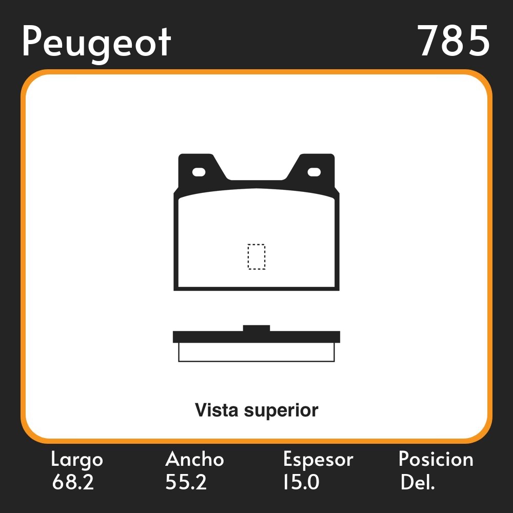 PASTILLAS DE FRENO PEUGEOT PEUG. 505 INJECTION" LAR. 68.2 ANC. 55.2 ESP. 15 POSC. DEL. GUARDADO () EQUIVALENCIAS FIMPEX 1831