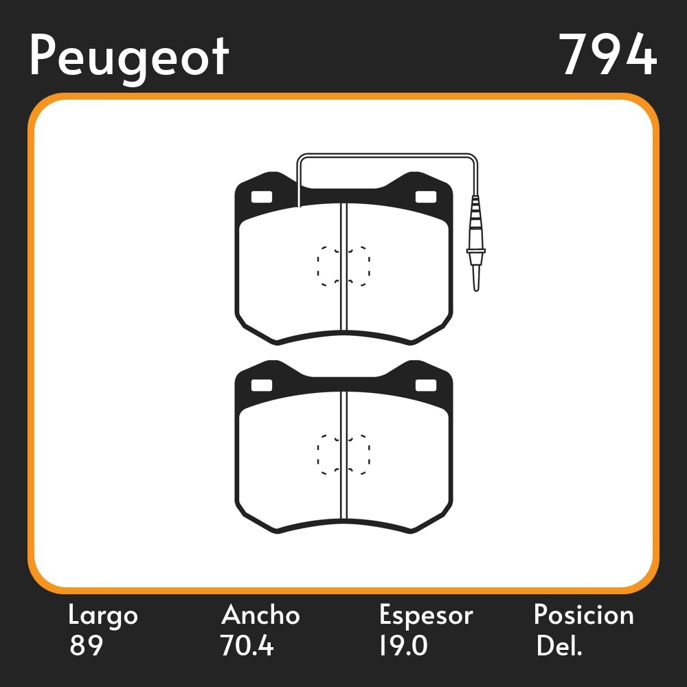 PASTILLAS DE FRENO PEUGEOT 504 (07/68-12/89) LAR. 89 ANC. 70.4 ESP. 19 POSC. DEL. GUARDADO (185) EQUIVALENCIAS MAZFREN 3048 FRAS LE PD/361-A FIMPEX 1016 LITTON 37321