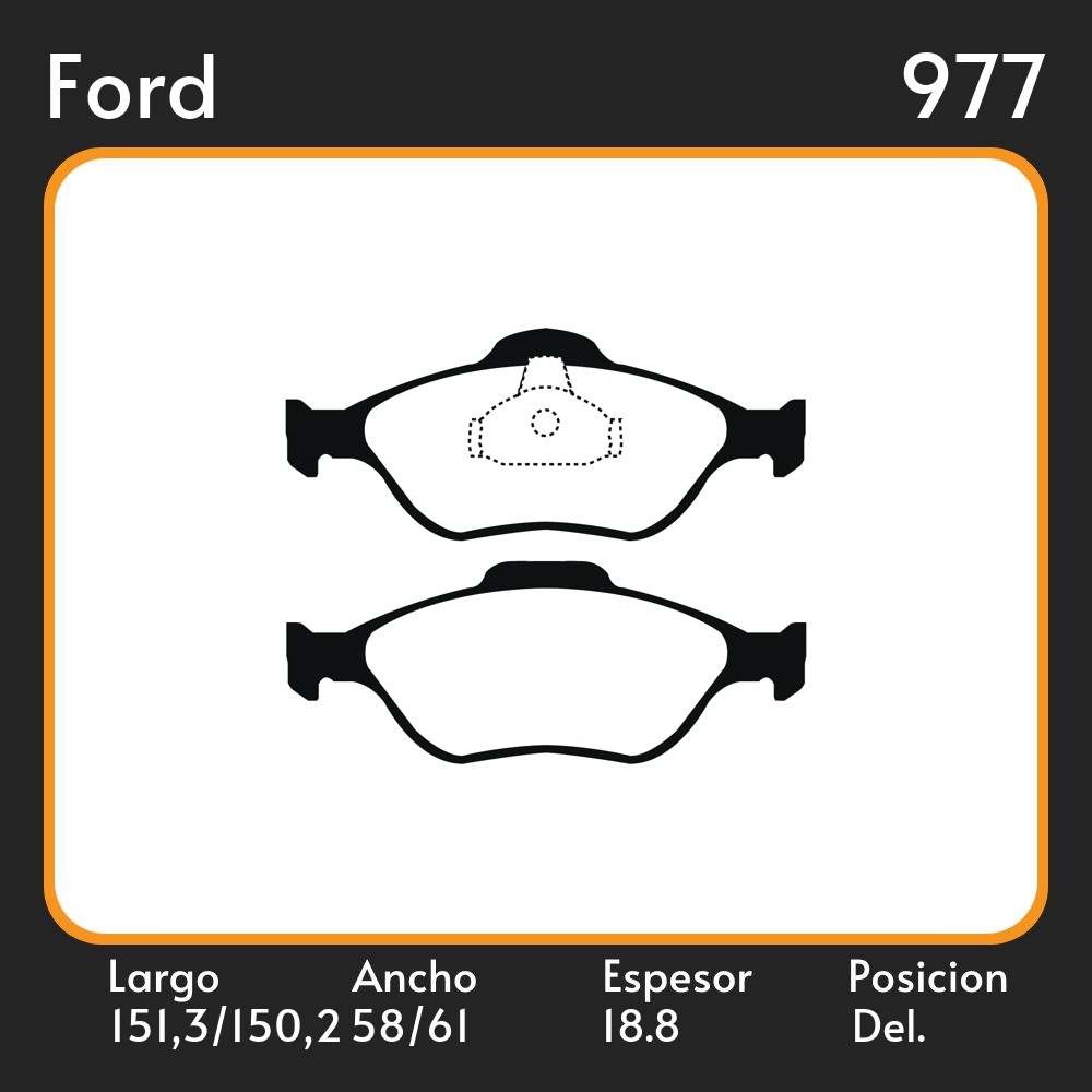 PASTILLAS DE FRENO FORD COURIER 99/ LAR. 151.3 150.2 ANC. 58.0/61.0 ESP. 18.8 POSC. DEL. GUARDADO (987) EQUIVALENCIAS FRAS LE PD/80 MAZFREN 3222 COBREQ N/182 FIMPEX 1931