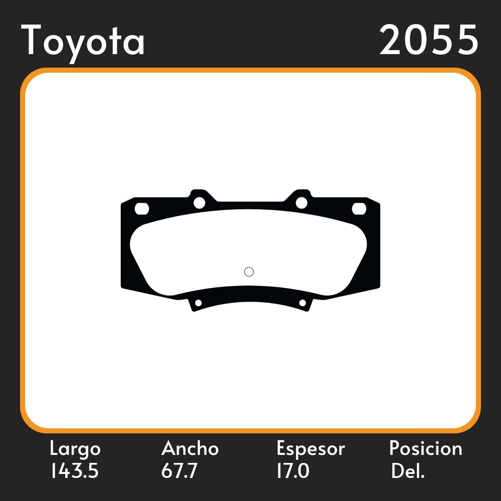 PASTILLAS DE FRENO TOYOTA HILUX VIGO 4WD 08/ LAR. 143.5 ANC. 67.7 ESP. 17 POSC. DEL. GUARDADO (981) EQUIVALENCIAS 3195 PD/1098 5200 22549 47700