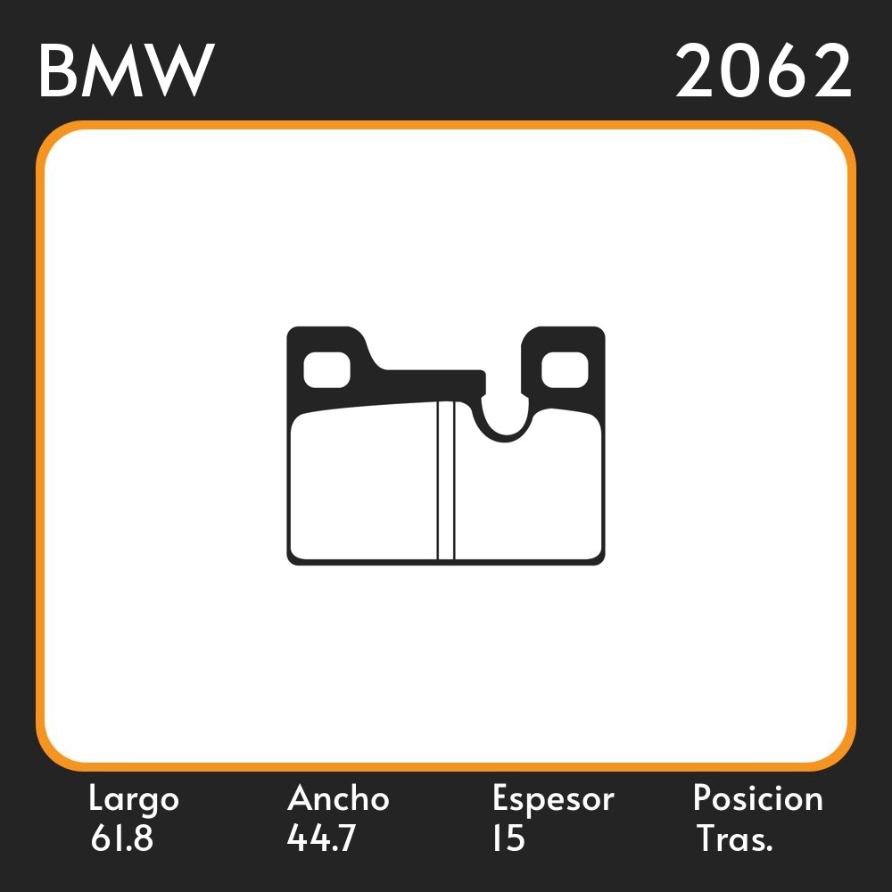 PASTILLAS DE FRENO BMW 2.0 320/6 2.3 323 I 78-82 LAR. 61.8 ANC. 44.7 ESP. 15 POSC. TRAS. GUARDADO (18) EQUIVALENCIAS FIMPEX 3313