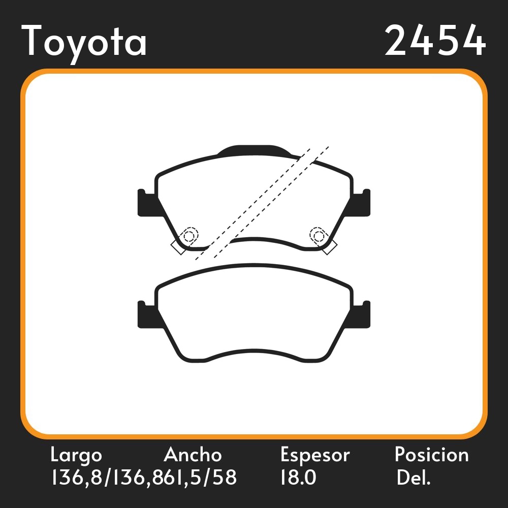 PASTILLAS DE FRENO TOYOTA COROLLA 06/ LAR. 136,8/136,8 ANC. 61,5/58,05 ESP. 18,00 18,00 POSC. DEL. GUARDADO (910) EQUIVALENCIAS 46320 1433 PD/669 3249 N/1366 4354 05P1316 HQ-2229A