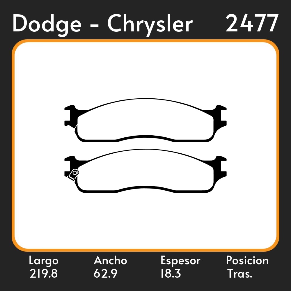 PASTILLAS DE FRENO DODGE-CHRYSLER RAM 1500 -2500 -3500 03/08 LAR. 219.8 ANC. 62.9 ESP. 18.3 POSC. DEL. GUARDADO (810) EQUIVALENCIAS 5732 PD/637 05P1478 44870