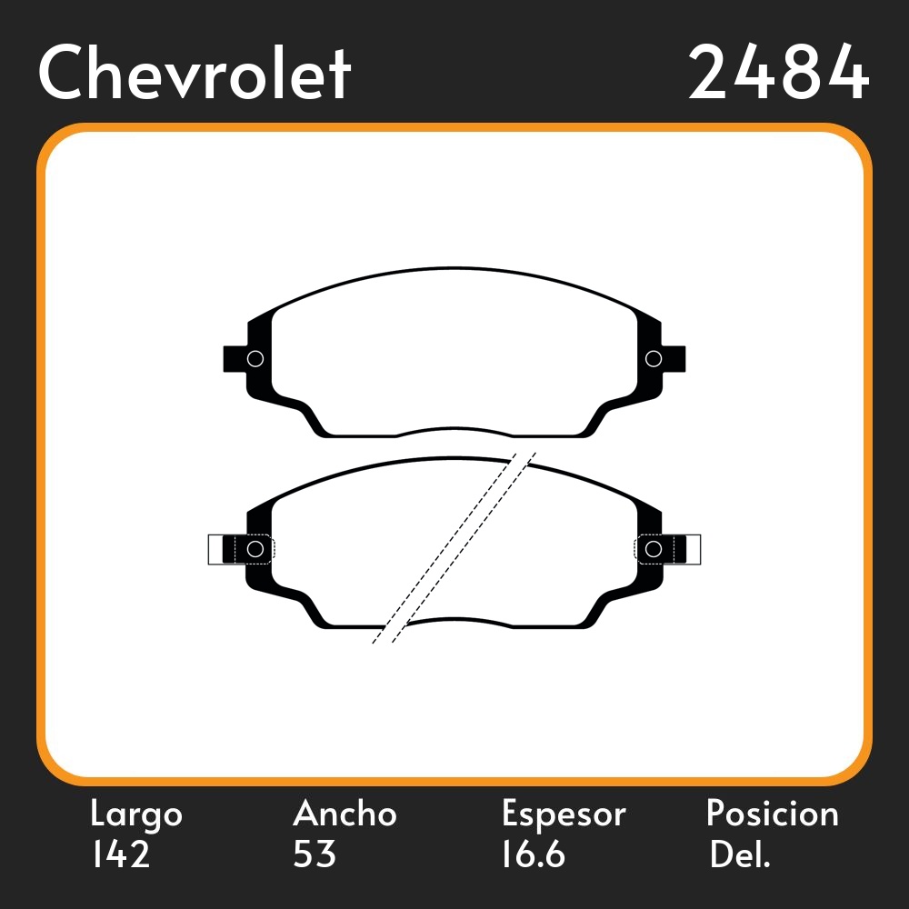 PASTILLAS DE FRENO CHEVROLET SPIN COBALT SONIC LT 1.6 16V, LTZ 1.6 16V 12/ LAR. 142 ANC. 53 ESP. 16.6 POSC. DEL. GUARDADO (1087) EQUIVALENCIAS 1758 PD/1347 48500 3232