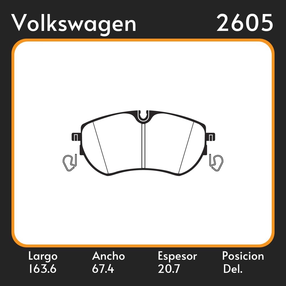 PASTILLAS DE FRENO VOLKSWAGEN AMAROK V6 3.0 TDI 2016 / CRAFTER II 2.0 TDI LAR. 163.6 ANC. 67.4 ESP. 20.7 POSC. DEL. GUARDADO 1185