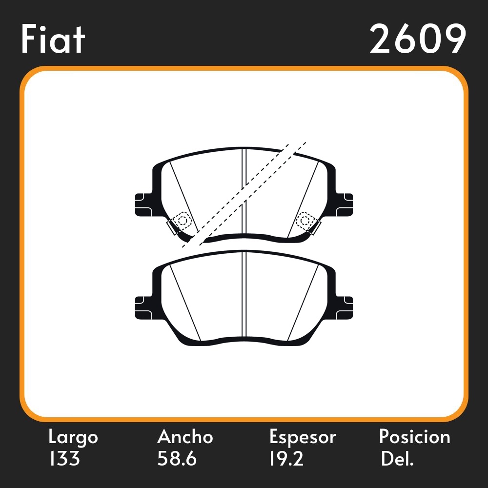 PASTILLAS DE FRENO FIAT TIPO 1.3D - 1.4 - 1.6 2015/ DELANTERA LAR. 133 ANC. 58.6 ESP. 19.2 POSC. DEL. GUARDADO 1209 EQUIVALENCIAS PD/1601 51370