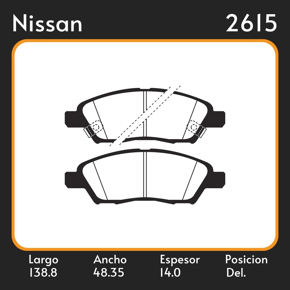 PASTILLAS DE FRENO NISSAN MARCH / NOTE II /TIIDA / VERSA 04-13 LAR. 138.8 ANC. 48.35 ESP. 14 POSC. DEL. GUARDADO 1088 EQUIVALENCIAS N/1426 3670 22548