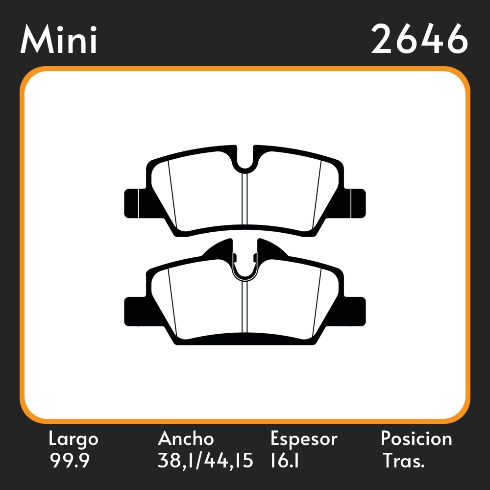 PASTILLAS DE FRENO MINI COOPER S 1.2-1.5-2.0 13/ LAR. 99.9 ANC. 38,1 44,15 ESP. 16.1 POSC. TRAS. GUARDADO 1200