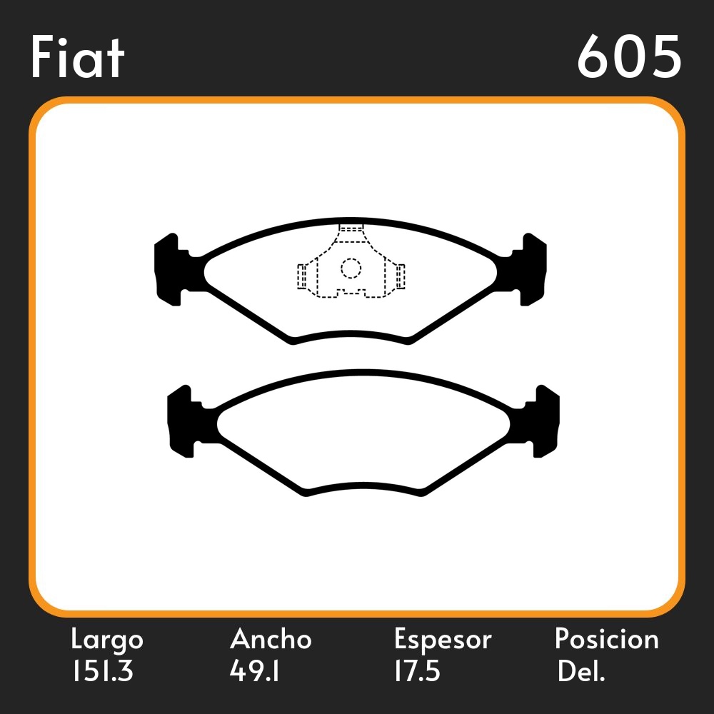 PASTILLAS DE FRENO COMPETICION FIAT PALIO 99/ LAR. 151.3 ANC. 49.1 ESP. 17.5 POSC. DEL. GUARDADO (512)