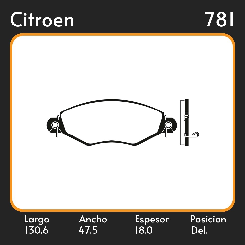 PASTILLAS DE FRENO COMPETICION PEUGEOT 206 99/01 C/ RESORTE LAR. 130.6 ANC. 47.5 ESP. 18 POSC. DEL. GUARDADO (537)