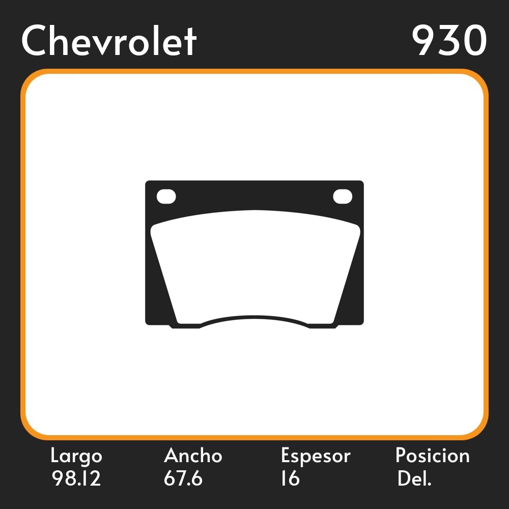 PASTILLAS DE FRENO COMPETICION FORD FALCON RANCHERA 71/91 LAR. 98.12 ANC. 67.6 ESP. 16 POSC. DEL. GUARDADO (287)